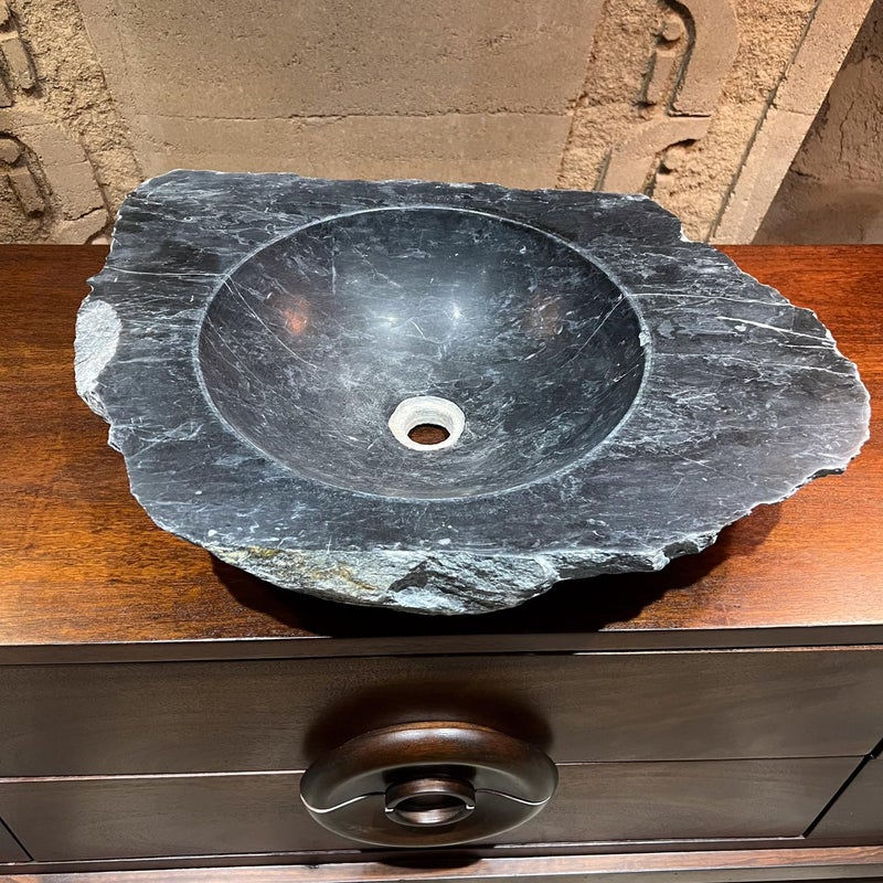 Hand Carved Black Marble Organic Natural Raw Stone Sink Basin, Vanity Sink